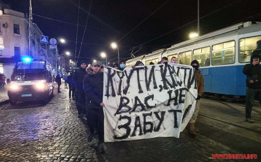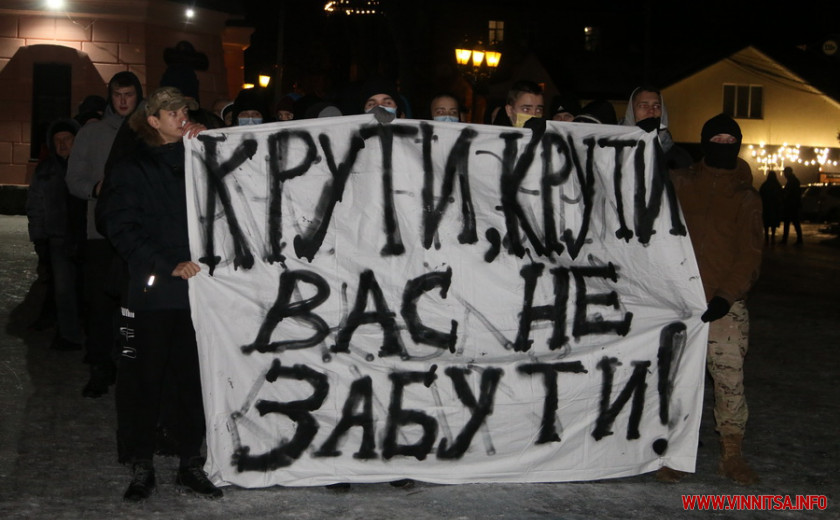 Ввечері 29 січня у Вінниці, понад 150 молодих людей вшанували пам'ять Героїв Крут. О 18 годині, центральною дорогою міста, вони вирушили від Вежі Артинова до пам’ятника Січовим стрільцям біля «Книжки». Їх супроводжували правоохоронці. Хода зайняла близько пів години.