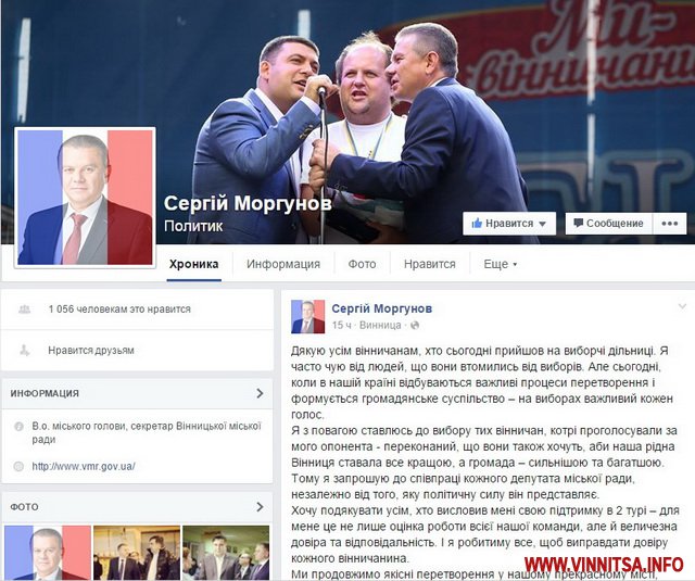 Ми продовжимо якісні перетворення у нашому прекрасному місті, реалізуємо Стратегію розвитку «Вінниця-2020» і зробимо Вінницю сучасним європейським містом позитивних і усміхнених людей!», - написав С. Моргунов на своїй сторінці в Facebook.