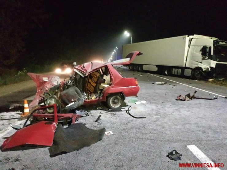 Як повідомили Вiнниця.info у відділі комунікацій ГУ Нацполіції у Вінницькій області, за попередніми даними, 36-річний водій легковика виїхав на зустрічну смугу, де зіштовхнувся з вантажівкою.