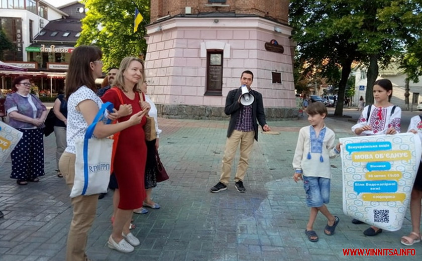 16 липня у Вінниці приєдналися до всеукраїнської акції святкування того, що закон про мову в Україні набрав чинності. Біля Вежі зібрались близько двох десятків людей. У гучномовець могли висловити свою думку всі бажаючі. Серед промов лунали національні пісні.