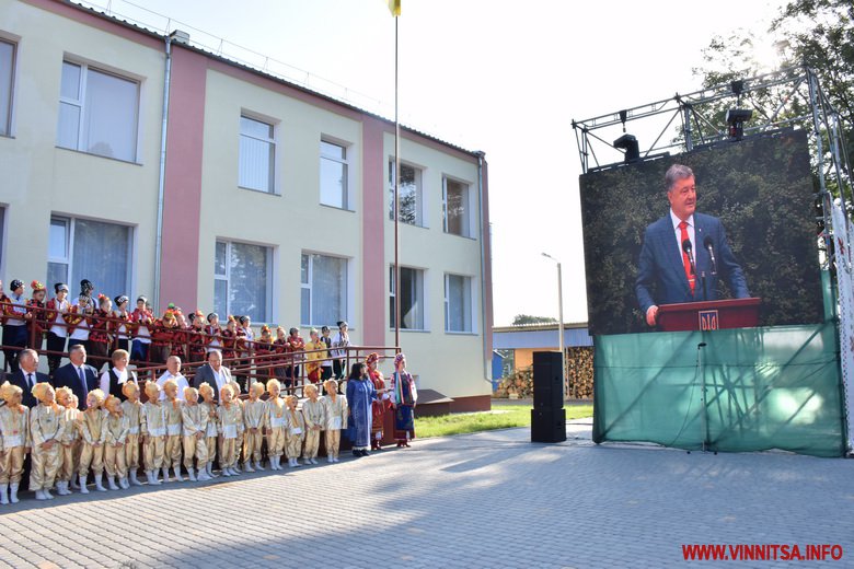 Свої вітання по відеомосту михайлівчанам під час урочистостей передав також Президент України Петро Порошенко. Окрім Михайлівської школи, у Вінницькій області цього року було відкрито ще дві школи-довгобуди: Сосонська школа у Вінницькому районі, Зведенівська – у Шаргородському районі. Їх відновлення та добудову було профінансовано за рахунок Державного фонду розвитку та реконструкції. Загалом по всій Україні таких шкіл-довгобудів було 12.