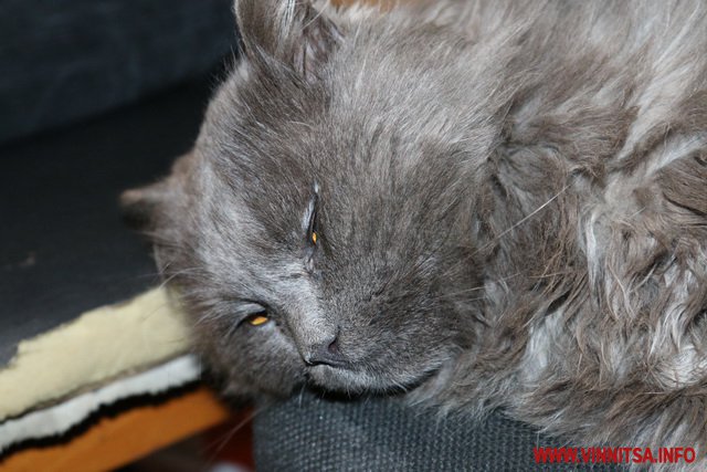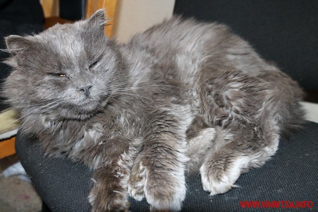 Кота підлікували. Сьогодні він важить близько 6 кілограмів. Любить спати у бібліотеці, розбудити його дуже непросто. Дружелюбний.