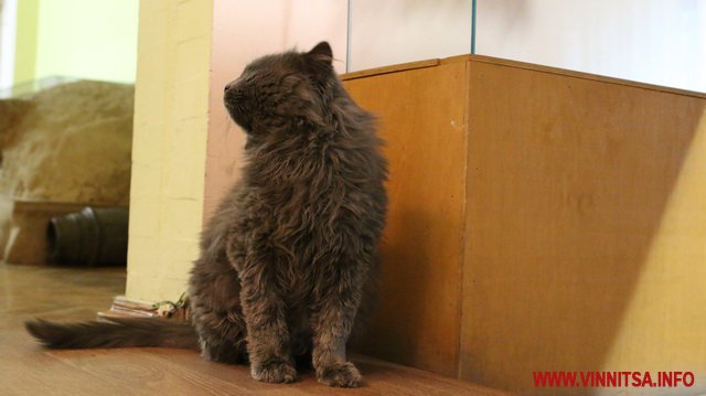 У Вінницькому краєзнавчому музеї з’явився власний кіт. Хвостатого назвали Шпателем. Працівники зізнаються, таку кличку придумав охоронець, адже він найчастіше зустрічався з ним в дворі. Тварина жила просто на вулиці.