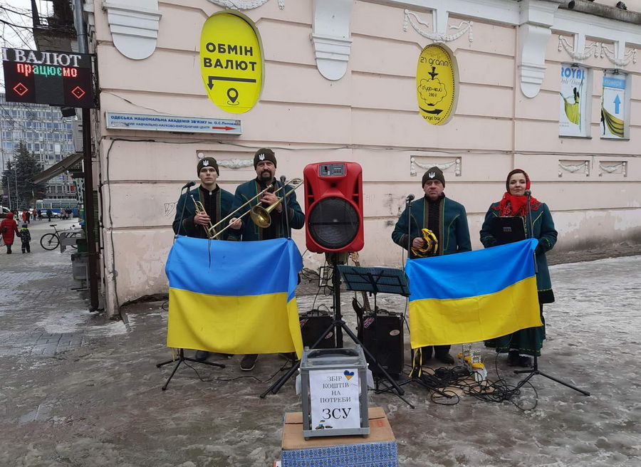 «В нас є два трубача , які грають на тромбоні, і музиканти, які грають на акордеоні та гітарі. Коли почали вимикати світло, ми придбали акустичну систему, яка працює від акумулятора. З кожного концерту ми передаємо кошти місцевим волонтерам, яких знаємо і довіряємо. Це благодійний фонд «Піщанські люди». За кошти, що ми передавали вони придбали 5 тепловізорів, теплий одяг, медикаменти. Також купували сонячну електростанцію», - говорить Олександр Мізерій.
