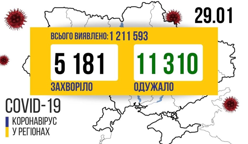 За даними РНБО, станом на ранок 29 січня у Вінницькій області зафіксували 282 нових випадків захворювання на коронавірус за добу, одужали – 158 мешканця області. Загалом по Україні – 5 181 нових випадків, одужали 11 310 пацієнтів. Внаслідок ускладнень, викликаних хворобою, минулої доби в Україні померли 128 пацієнтів, у Вінницькій області зафіксували 5 летальних випадків. Загалом, з початку епідемії на Вінниччині від коронавірусу померли 501 пацієнтів. Одужали – 22 432.