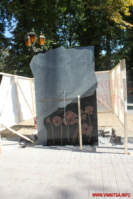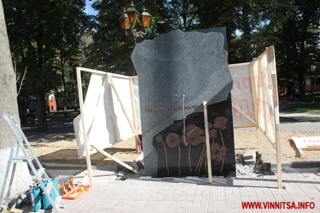 Два дні поспіль 18-19 серпня на площі Європейській встановлюють мультимедійну стелу. Урочисте відкриття її заплановане на 23 серпня у День Прапора України. На стелі показуватимуть фото та коротку інформацію про вінничан, які загинули під час Революції гідності на київському майдані та на Сході країни. На стелі вже видно напис «Герої не вмирають».
