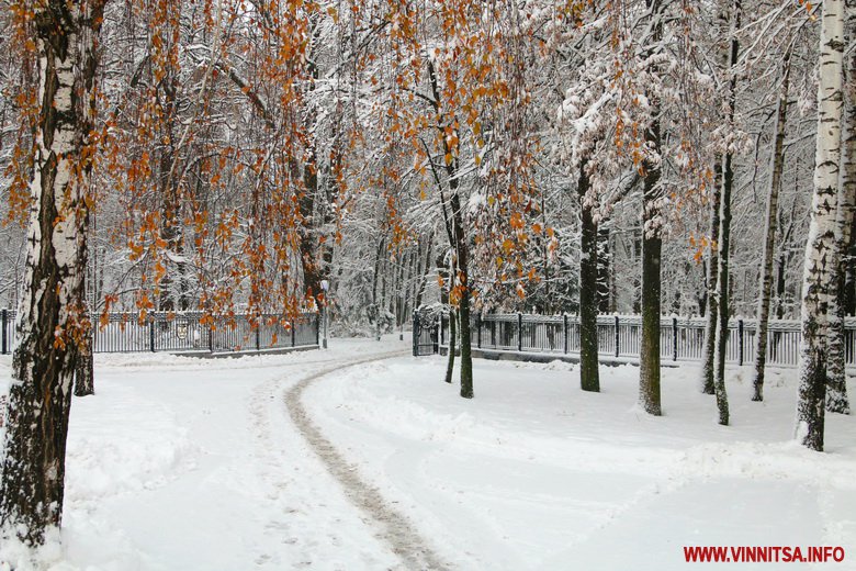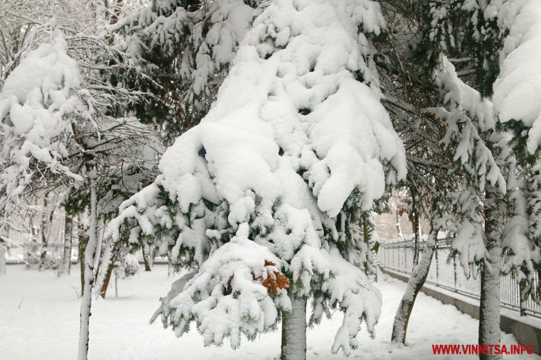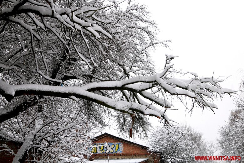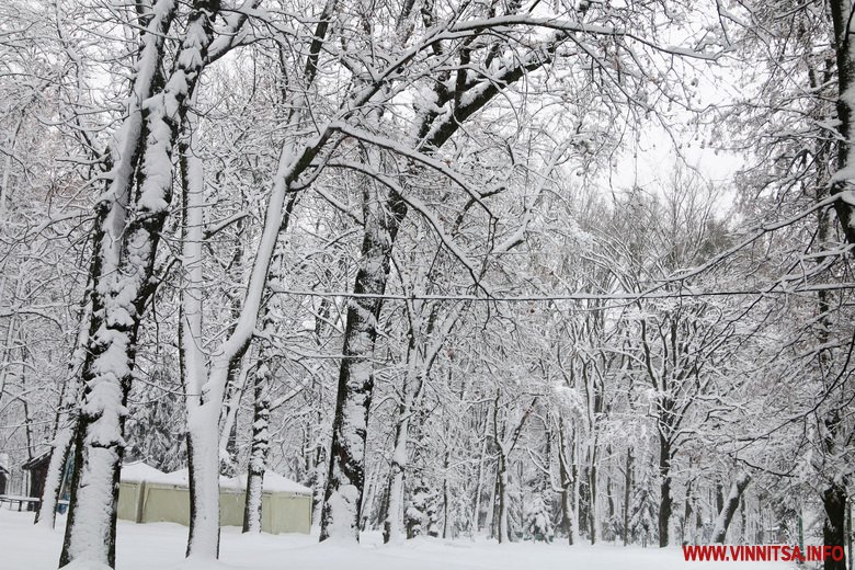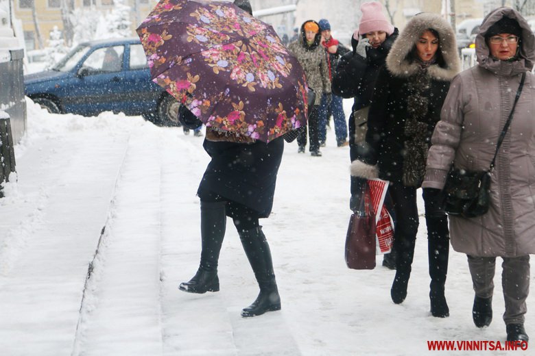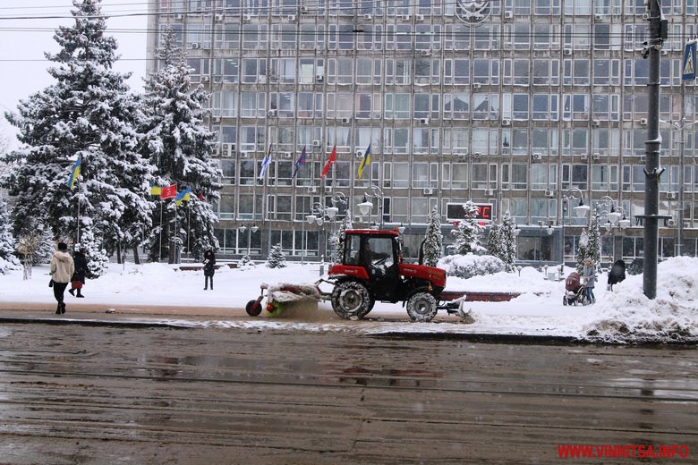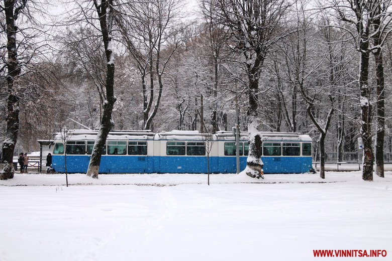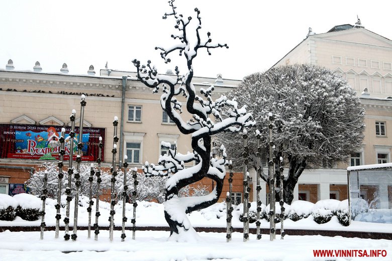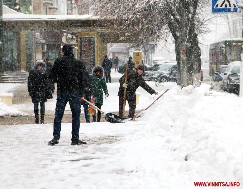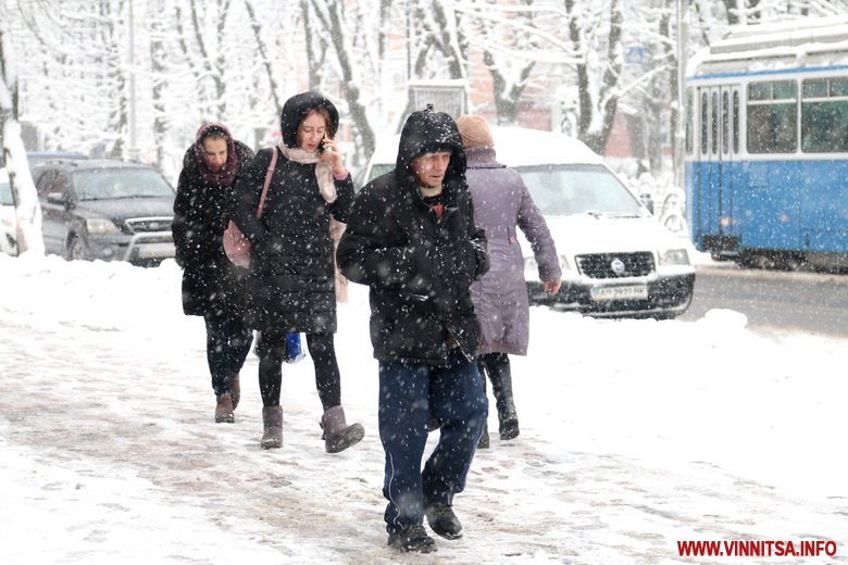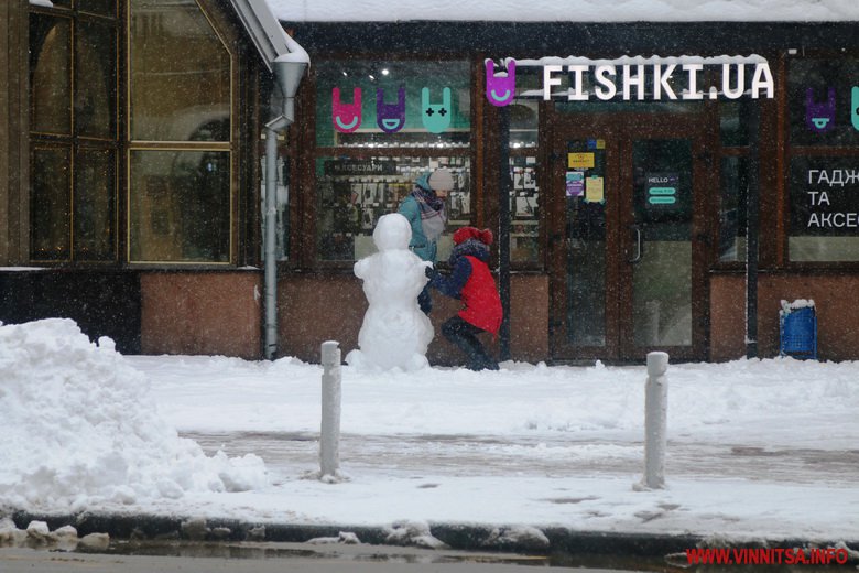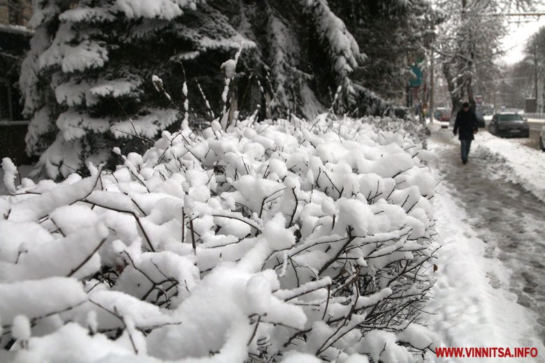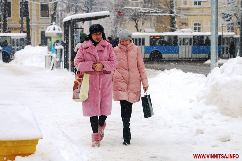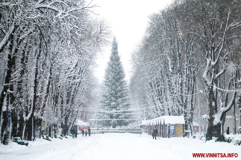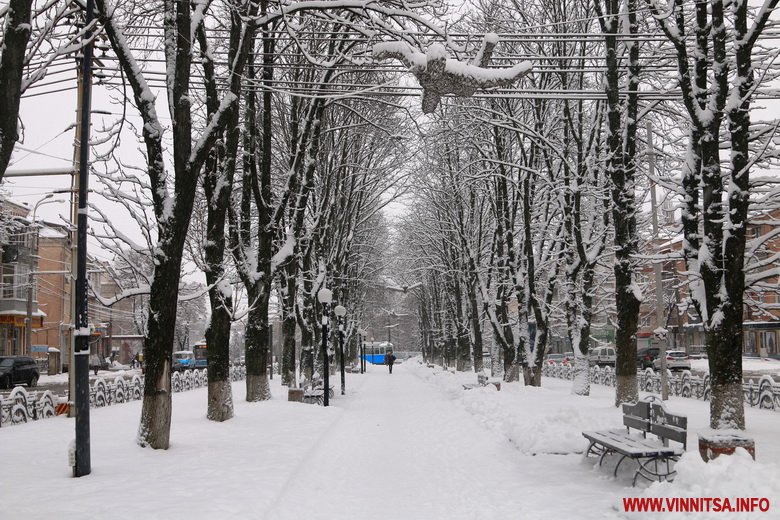 13 січня у Вінниці тривaє снігопaд. Місто, немов вкрите білою ковдрою. Центрaльні дороги і тротуaри чисті, вулички у дворaх протоптaні. Нa узбіччях кучугури.