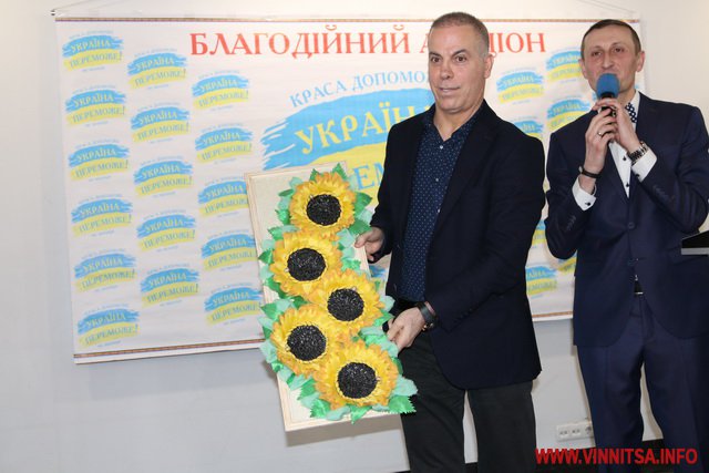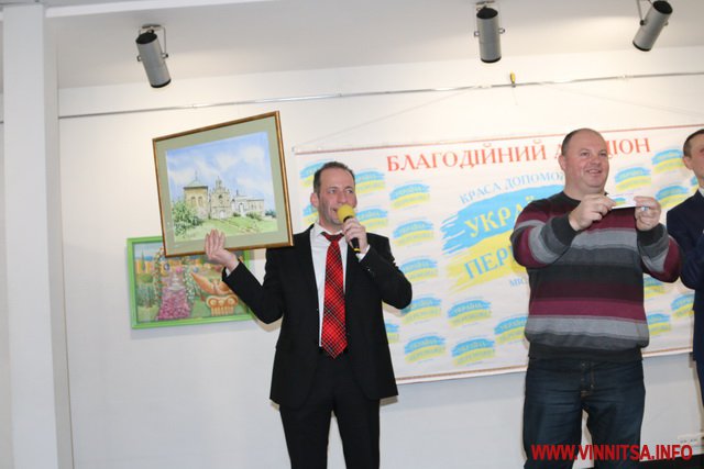У другій чaстині aукціону в лотереї були розіграні речі, які надали відомі вінничани, кошти з цих лотів, теж підуть військовим.