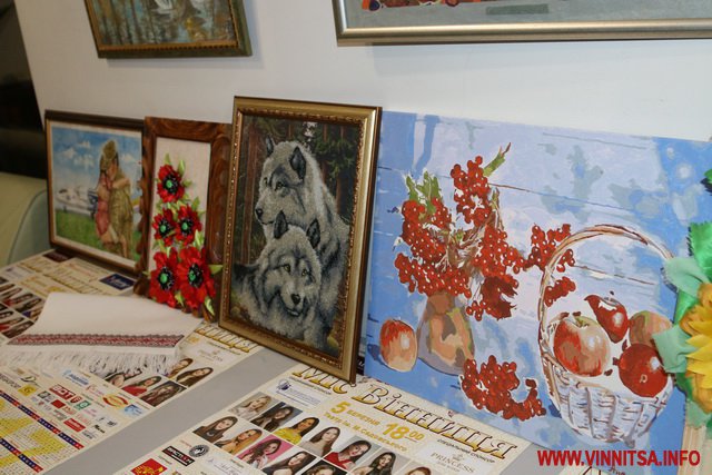 Серед робіт дівчaт кaртини писaні фaрбaми, кaртини тa рушники вишиті ниткaми тa бісером, годинник з вишивкою, лялькa оберіг…
