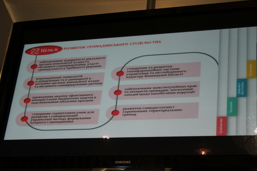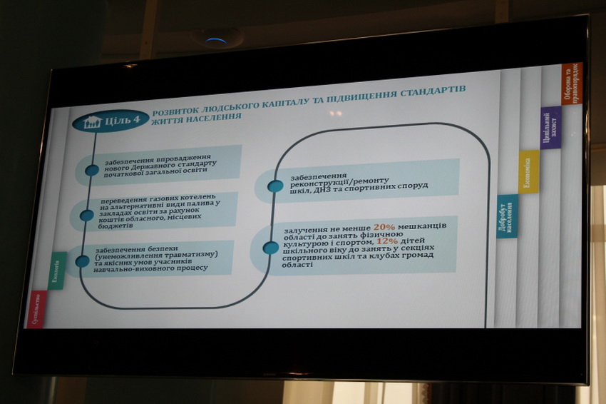 З доповіддю перед присутніми виступив директор Департаменту міжнародного співробітництва та регіонального розвитку облдержадміністрації Володимир Мережко. Він презентував основні напрями та цілі Програми, а саме: реалізація державної політики в оборонній та правоохоронній діяльності; захист населення і територій області від наслідків надзвичайних ситуацій та забезпечення функціонування територіальної цілісності підсистеми єдиної державної системи цивільного захисту; забезпечення умов сталого економічного розвитку, зростання конкурентоспроможності економіки області; розвиток людського капіталу та підвищення стандартів життя населення; екологічна безпека навколишнього середовища та розвиток громадянського суспільства.