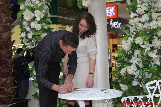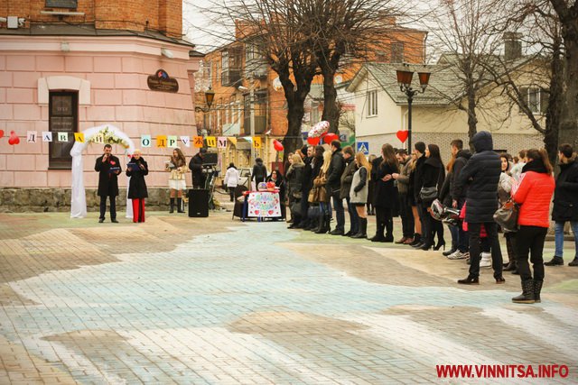 14 лютого у Вінниці «одружилися» близько 80 пар закоханих. Хлопці і дівчата отримали чудову нагоду спробувати себе в ролі наречених, що правда, лише на один день. Весільні церемонії тривали одразу у двох місцях: на площі Європейській та у ТЦ «Мегамолл».
