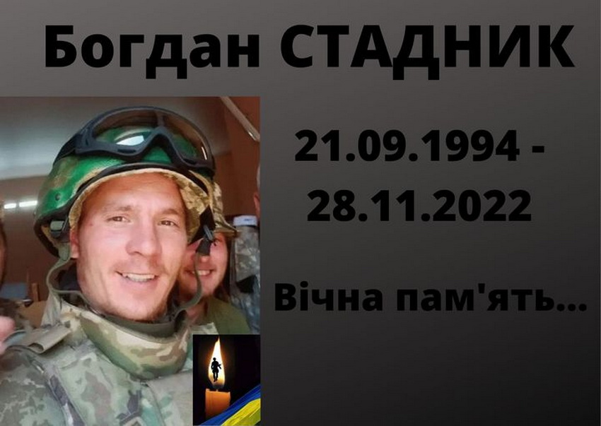 28 листопада захищаючи Україну від російського загарбника, в районі Красногорівки Донецької області загинув Богдан Петрович Стадник. Герою назавжди 28 років.