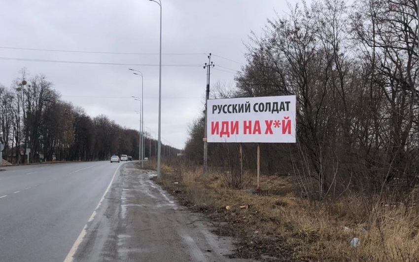 «РОССИЯНЕ! добро пожаловать в АД», «русский солдат ИДИ НА Х*Й», «русский корабль ИДИ НАХУЙ».