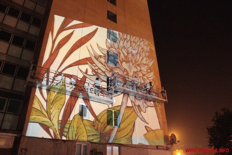 У Вінниці розпочали створювати останній мурал в рамках проекту «VIN ART CITY». Вночі на фасад багатоповерхівки за адресою вул. Замостянська, 59 нанесли контури майбутнього малюнка. Зробили це за допомогою проектора. Перед тим – стіну пофарбували.