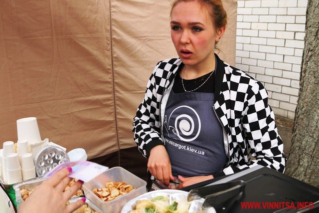 Вінничанам пропонували скушували равликів, приготованих у соусі. За одного просили 20 гривень. Тим, хто зважувався на таке вперше, проводили «інструктаж».