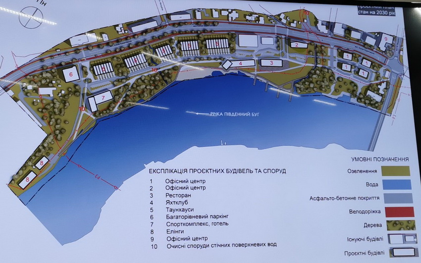 Детальним планом території між пляжем «Спартак» та Староміським мостом передбачено поступово знести приватні будинки і побудувати офіси, таунхауси, зони відпочинку, парковки тощо. Пристань «Вінниця» планують забрати, замість неї обладнати зелену зону. Сервісний центр Renault залишиться. За ним планують збудувати ресторан та яхт-клуб. Будинки, які знаходяться між автосалоном Renault та пляжем «Спартак» планують знести і замість них побудувати п’ять таунхаусів. На самому пляжі «Спартак» планують розмістити спорткомплекс та готель. Окрім цього, тут планують облаштувати очисні споруди, які фільтруватимуть стічні води з міста.