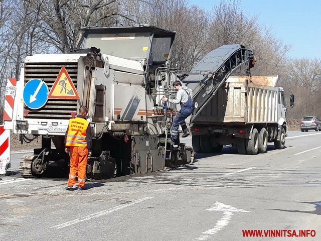 «А/д М-21 Виступовичі- Житомир- Могилів-Подільський. Протяжність ділянки 5 км. Організовано реверсний рух. Розпочато роботи з поточного середнього ремонту. Буде влаштовано шар основи з методом регенерації, вирівнюючи та ЩМА», - повідомили Вінниця.info у Службі автомобільних доріг у Вінницькій області.