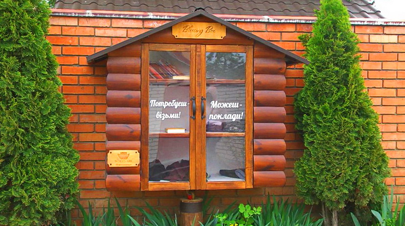 На Кореї, так називають один з мікрорайонів Вінниці, сім'я під своїм приватним будинком встановила дерев'яний бокс, що своєю формою нагадує шафу. На скляних дверцятах написи: «Потребуєш — візьми» і «Можеш — поклади». У такий спосіб місцеві жителі міняються між собою різноманітними речами.