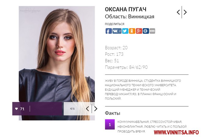 Оксана Пугач, переможниця конкурсу «Міс Вінниця 2015»