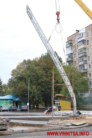 У Вінниці на площі Могилка почали монтувати новий постамент під літак «МіГ-15».