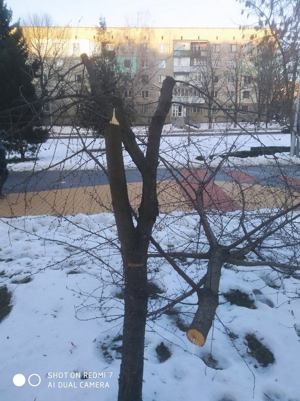 «Наші працівники виявили, що у 2 дерев повністю зрізані верхівки, ще 6 вишень обійшли пилкою по колу навколо стовбура – вони тримаються «на волосинці». На жаль, їх вже не врятувати, з такими пошкодженнями вони засохнуть, рости точно не будуть. Просто в голові не вкладається таке варварство по відношенню до дерев», – каже Тетяна Прибиш. За словами фахівців, деревам було близько 10-15 років.