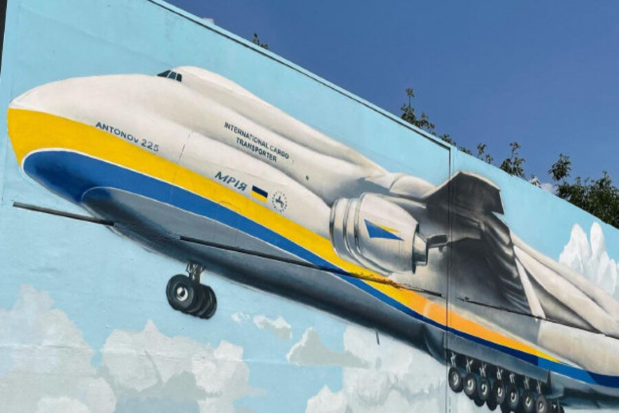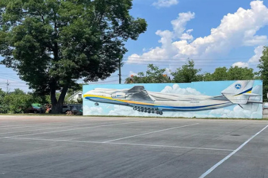 У місті Бориспіль на Київщині з’явився мурал із легендарним літаком АН-225 «Мрія». Художник намалював найбільший літак у світі на стіні тенісного корту у міському парку.