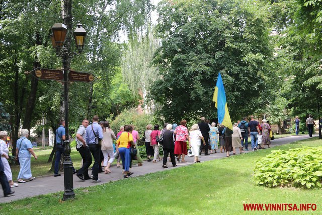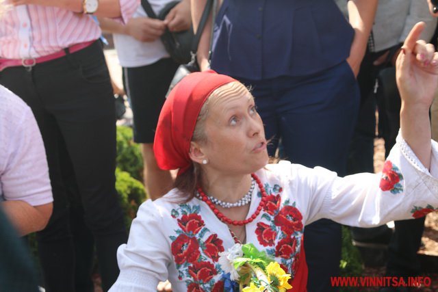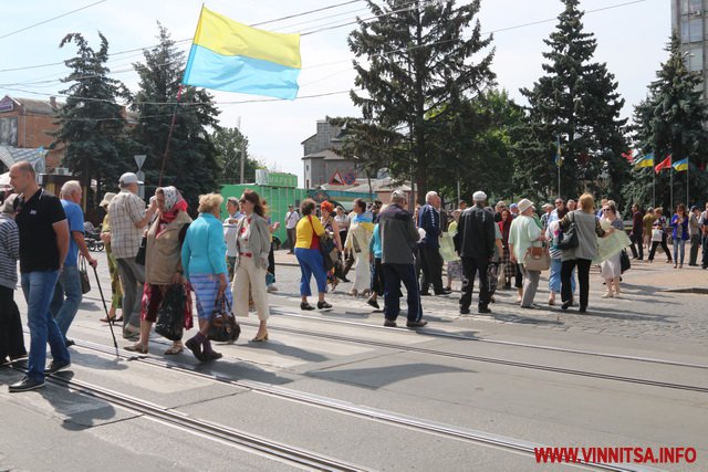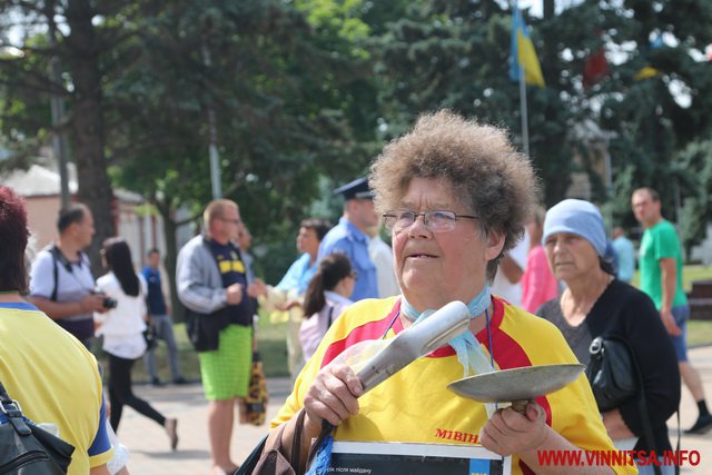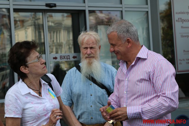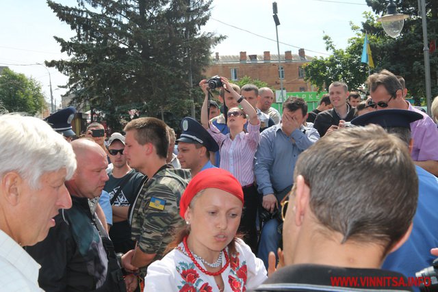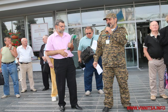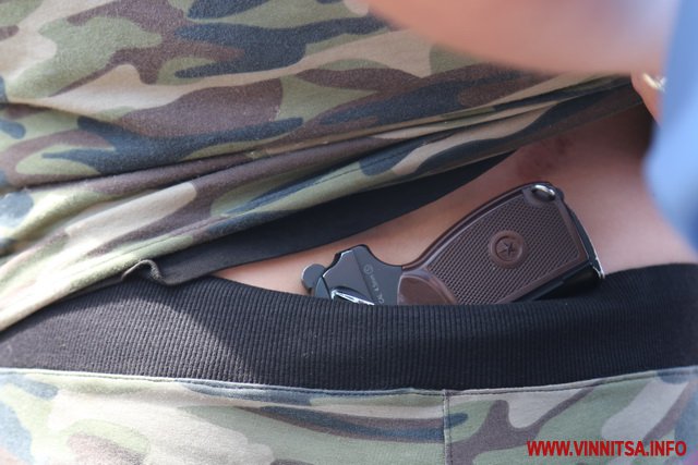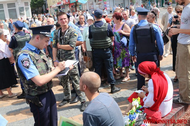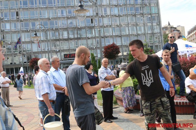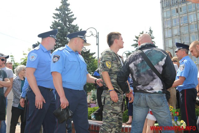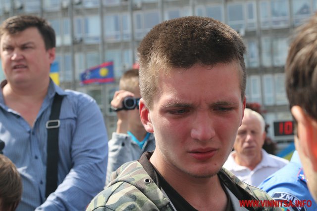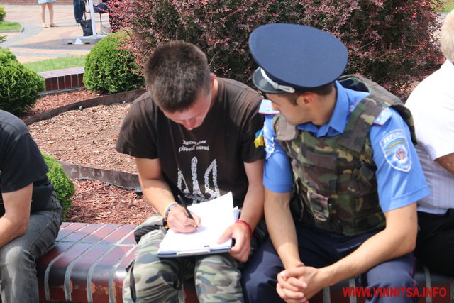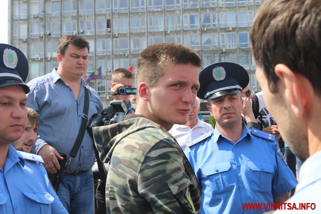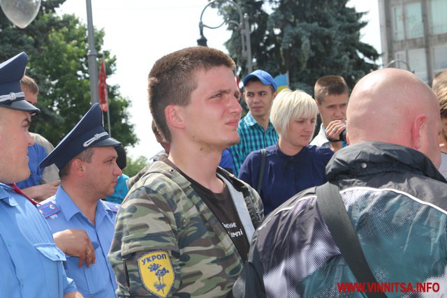 Хлопець на ім’я Вадим з нашивкою «Укроп» на камуфляжі розповів, що він сам з Харкова, живе в Києві, а приїхав до Вінниці погуляти. Саме так він пояснив свою мету візиту до Вінниці і участь в акції журналісту ВИННИЦА.info.