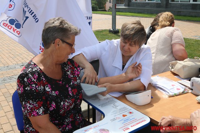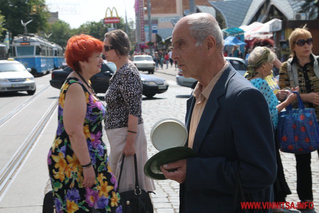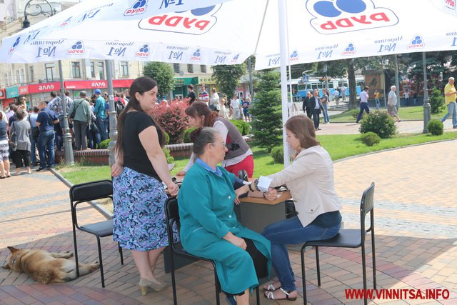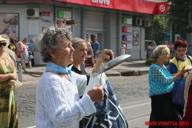 А починалась акція мирно, перед перекриттям транспорту, пенсіонерам міряли тиск і розповідали як отримати дешеві ліки за міською програмою "Профілактика та лікування артиріальної гіпертензії в м. Вінниця на 2015 рік".