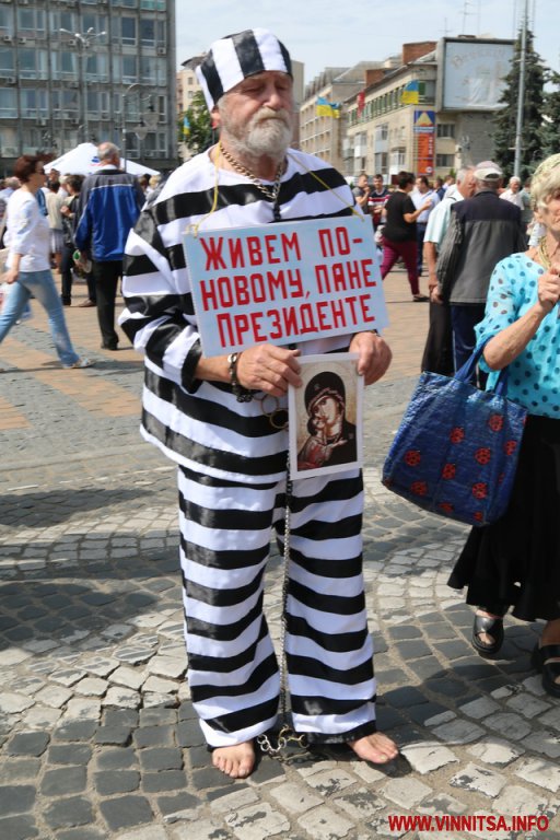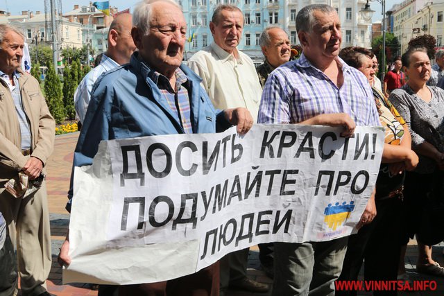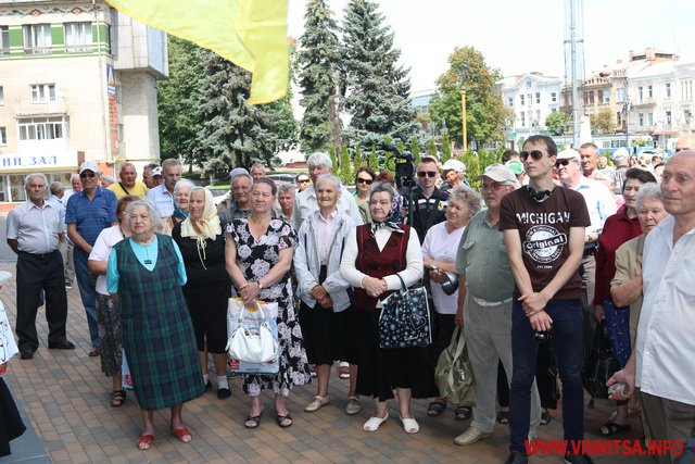 На опозиційній акції, висували такі вимоги до місцевої влади: зламати корупційні схеми в «Нафтогазі», «Енергоатомі»,- розробити та затвердити програму «Доступні ліки» (яка вже зроблена міськрадою і впроваджується з 1 липня – ред.),- підвищити мінімальний прожитковий мінімум, були не лише місцеві люди літнього віку. Серед мітингуючих були жителі інших міст – Києва і Харкова. В одного з них правоохоронці вилучили зброю та газовий балончик.