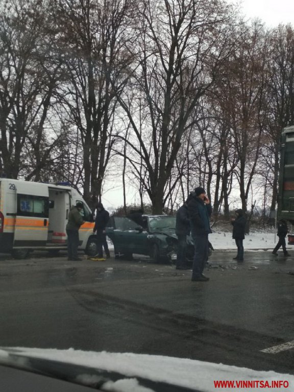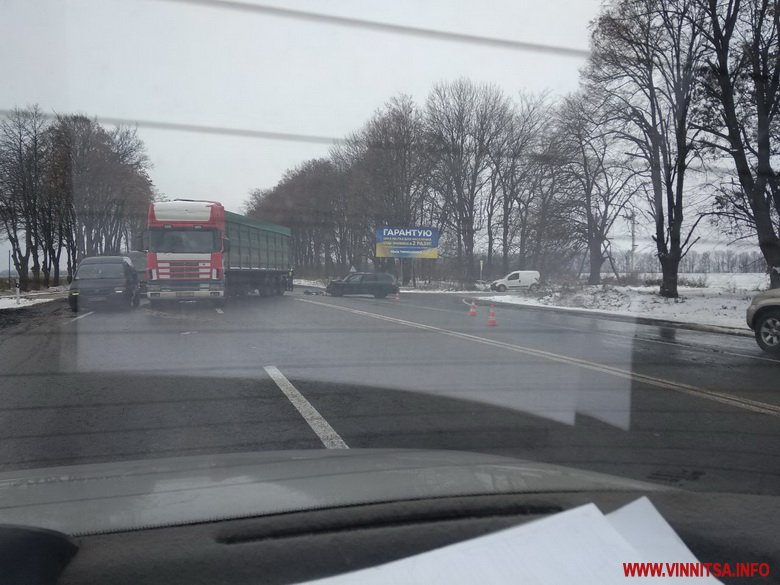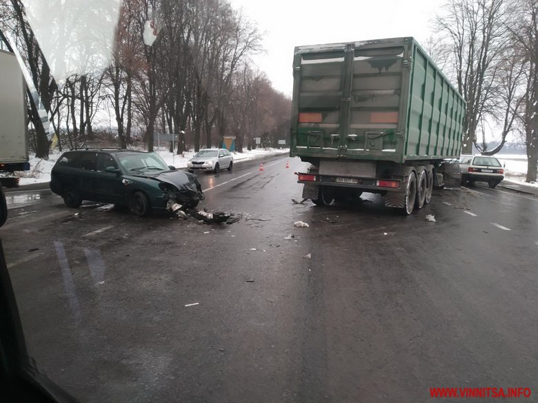 Попередньо, водій вантажівки, виїжджаючи з другорядної дороги на головну, не надав перевагу в русі «Daewoo», який рухався у напрямку Вінниці. Водій легковика почав маневрувати, аби уникнути зіткнення, але цього зробити йому не вдалось. Автомобіль зіткнувся з лівою частиною напівпричепа.