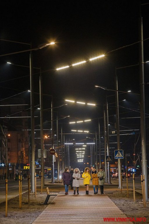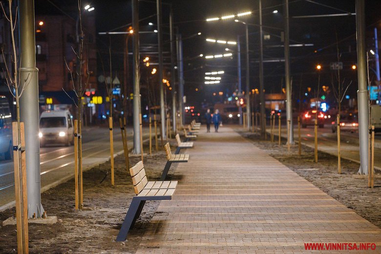 У Вінниці триває реконструкція вулиці Замостянської. Минулого року повністю оновили першу чергу, а нещодавно – пішохідну зону обладнали додатковою підсвіткою. Світильники підвішені над землею.