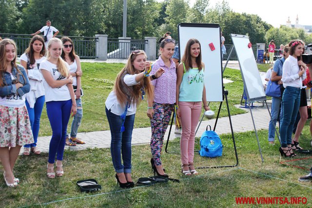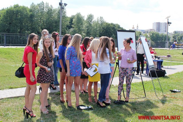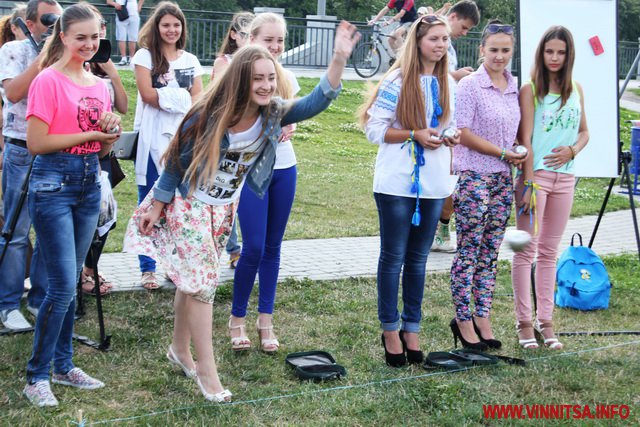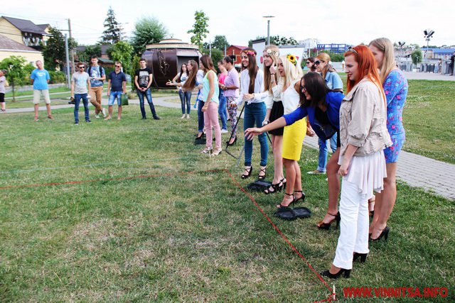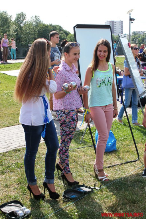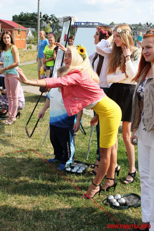 «Шпильки», кульки і короткі спідниці… 16 липня на набережній «Рошен» тендітні вінничанки на високих підборах грали у петанк. Учасниками змагань стали вісім команд, в кожній з яких по три особи.