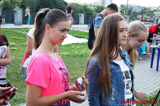 Це вже третє таке змагання у Вінниці. Дівчата із сміхом під драйвову музику кидали металеві кульки, вгадуючи, долетить чи перелетить. Головним орієнтиром була дерев’яна кулька, від якої і вимірювали відстань до інших.
