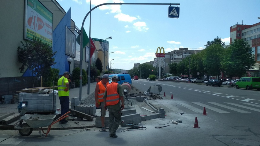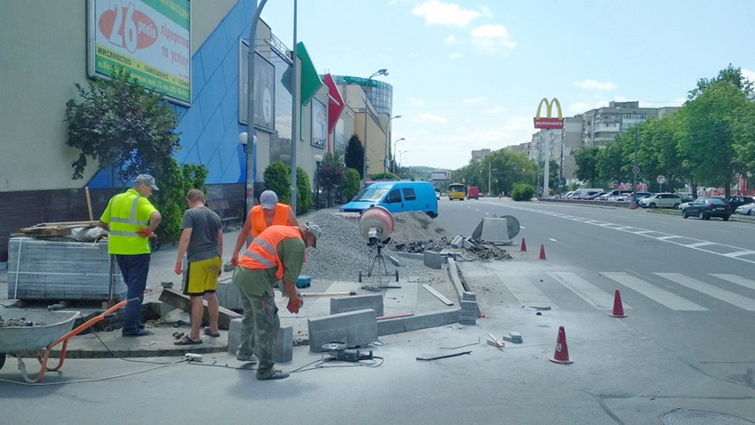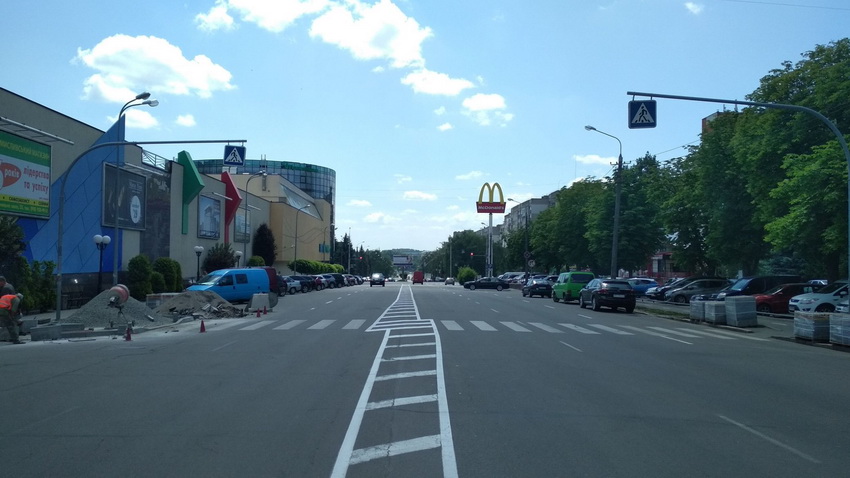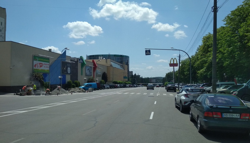 20 червня у Вінниці на проспекті Юності почали облаштовувати «антикишені» на нерегульованих пішохідних переходах («антикишеня» - розширення тротуару в місті переходу, або перехрестя).