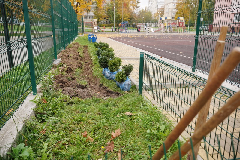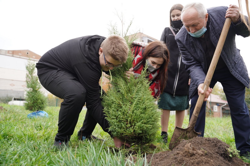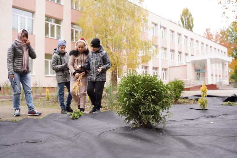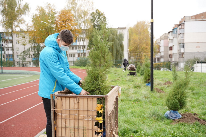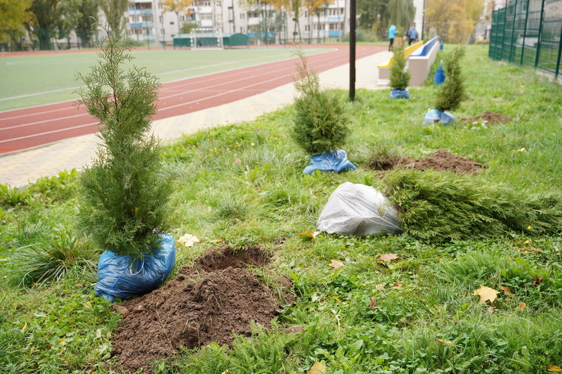 У школі №18 діти та вчителі висаджували туї, кущі самшиту та ялинки.