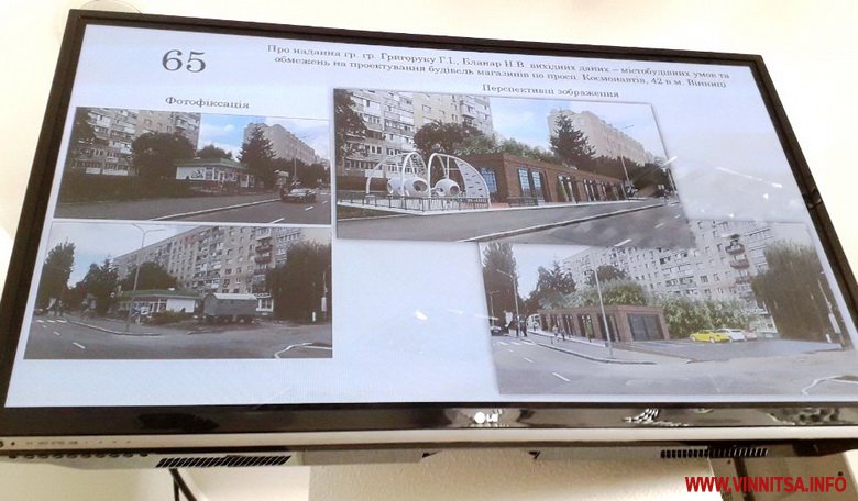 21 лютого виконком Вінницької міської ради погодив надання вихідних даних – містобудівних умов та обмежень Григорук Г.І. та Бланар Н.В на проектування будівель магазинів.