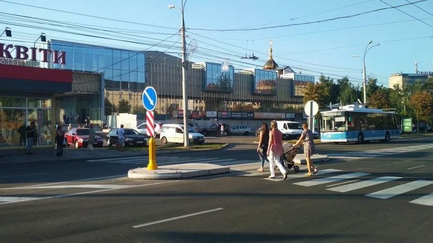 - перехід упирався в зупинку громадського транспорту, тож коли тролейбус чи автобус зупинявся, пішоходи обходили його по проїжджій частині;