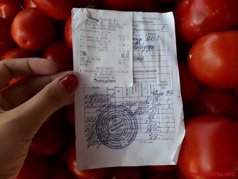 На «Урожаї» запевняють, що більшість овочів і фруктів, які з’являються на прилавках, проходять лабораторну перевірку. Кожен з продавців має відповідний документ.