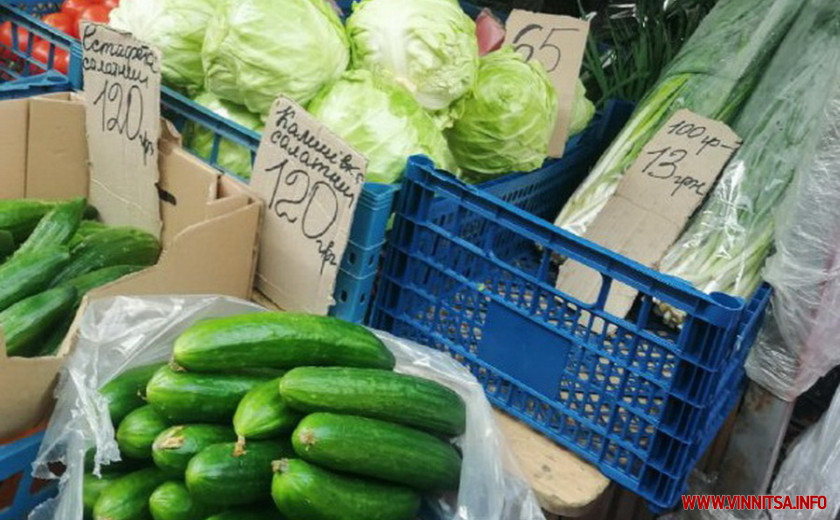 картопля – від 9 грн, цибуля – від 45 грн, редиска від 90-95 грн, огірки в межах 115-160 грн, цибуля зелена - 15 грн за 100 грн, цибуля червона – 55 грн, морква - від 45 грн, буряк – від 17 грн, капуста молода – від 65, капуста стара – від 25, броколі - 130 грн, пекінська капуста -25 грн, перець солодкий – 150 грн, гриби – від 80 грн, томати від 80 грн, гарбуз - 65 грн, яблука – від 20 грн, груші – від 45 грн.
