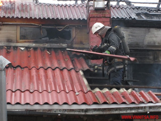 На місце виклику одразу прибуло два відділення Державних пожежно-рятувальних частин №1 та №4 м. Вінниці, а також навчальна пожежно-рятувальна частина. На момент прибуття підрозділів вогнем було охоплено дах двоповерхової будівлі на площі 100 квадратних метрів.