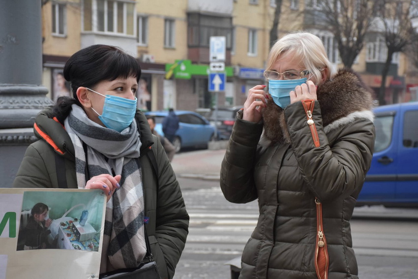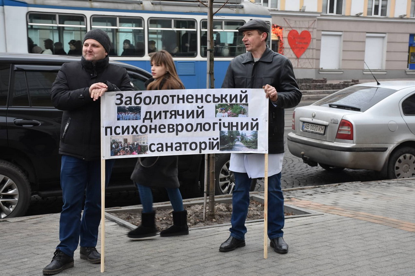 Перед початком засідання до адмінбудівлі прийшли працівники Заболотненського дитячого психоневрологічного санаторію. Люди протестують проти закриття медичного закладу.