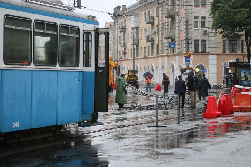 15 липня у Вінниці розпочали ремонт трамвайних колій на вулиці Соборній. Наразі роботи тривають McDonald's. Там частину рейсів демонтують.