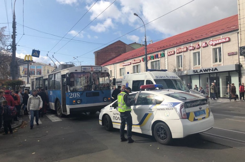 11 жовтня близько 13:45 години у Вінниці на вул. Соборній тролейбус №5, який рухається за маршрутом «Вишенька-Залізничний вокзал», збив чоловіка, який переходив дорогу на пішохідному переході.