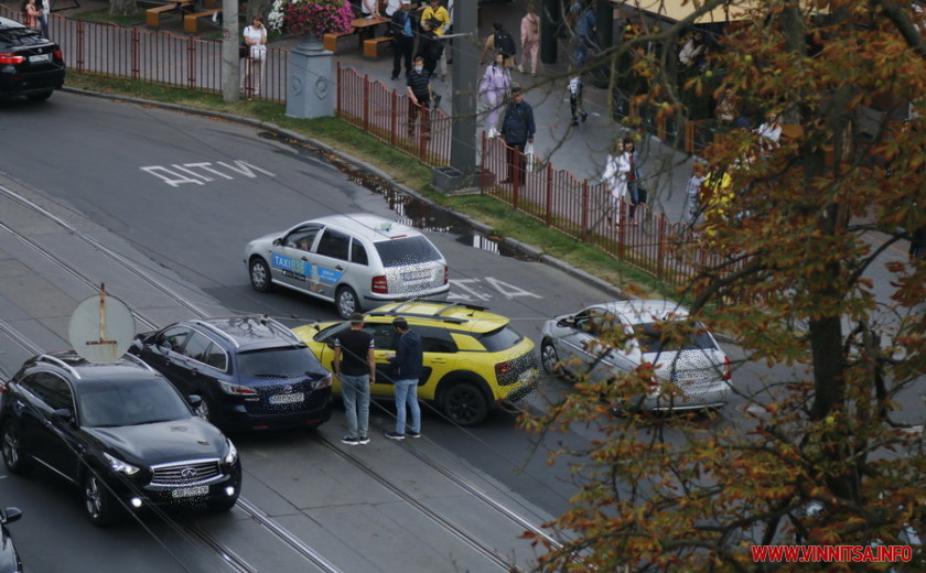 17 вересня, близько 17 години, на трамвайній колії по вулиці Соборна у Вінниці, зіштовхнулися дві автівки. Це трапилося біля повороту з «McDonald's», перед трамвайною зупинкою. Кілька хвилин водії поспілкувалися між собою та сфотографували свої машини.