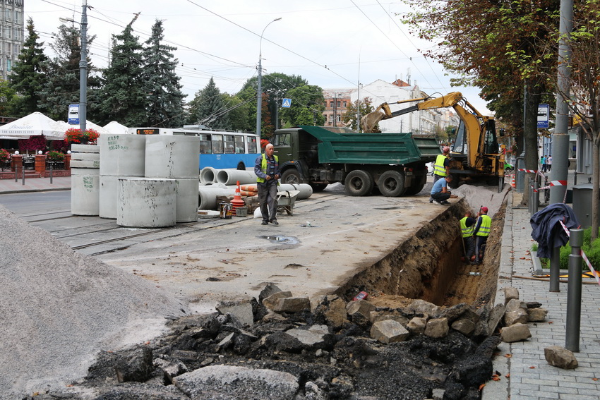 Станом на 22 липня, від McDonald's до готелю «Франція» закінчують роботи по облаштуванню нових колій. Також неподалік встановлюють зливну каналізацію, приблизно на 1,5 метрів завглибшки.