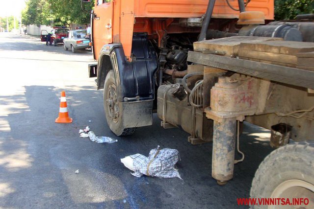 На місці пригоди було встановлено, що 46 річний водій автомобіля «КамАЗ» перетинаючи перехрестя вулиць Чехова-Немирівське шосе в напрямку вулиці Ватутіна, допустив наїзд на двох пішоходів, які рухались по регульованому пішохідному переходу.