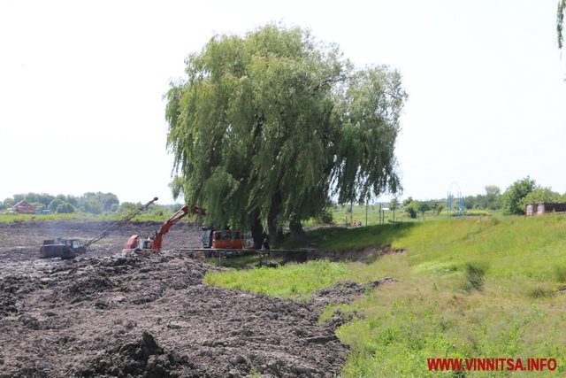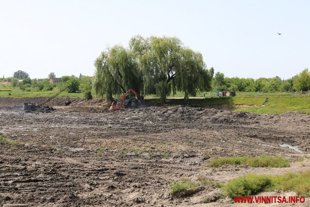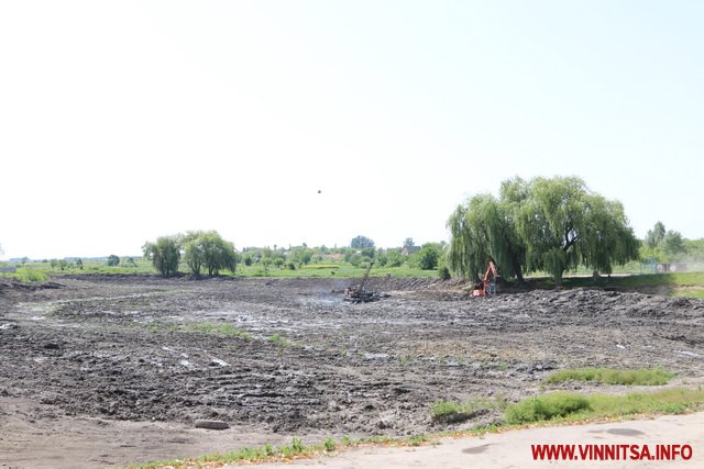 У Вінниці в Тяжилові біля Східного автовокзалу очищають дно ставка та проводять ремонт гідротехнічної споруди. На місці болота, яке там вже два роки, жителі Тяжилова до кінця липня матимуть місце для відпочинку, засмаги і купання.