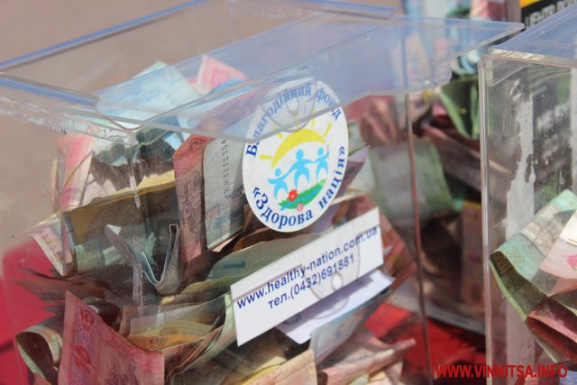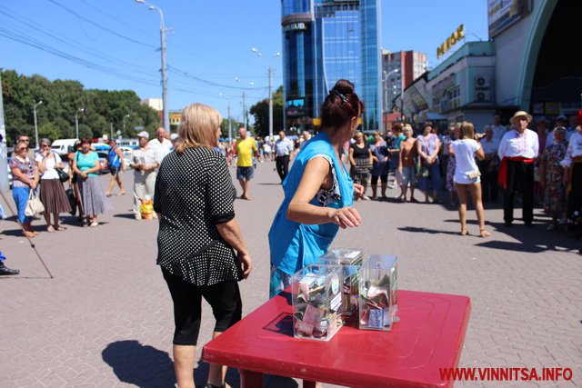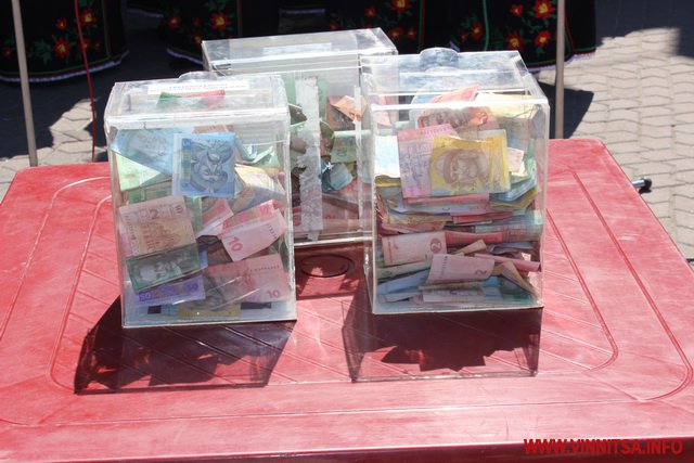 Незважаючи на дуже спекотну погоду кілька десятків вінничан прийшли підтримали народні колективи як фінансово, так і оплесками.