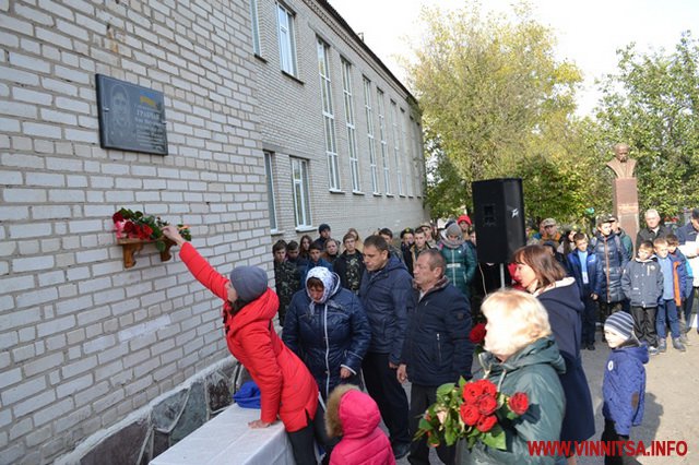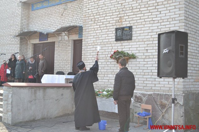 Відкрили меморіaльну дошку бaтьки зaгиблого героя тa головa ГО «Спілкa учaсників AТО Липовецького рaйону» Юрій Яремчук.