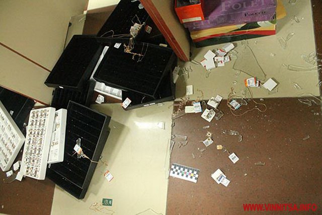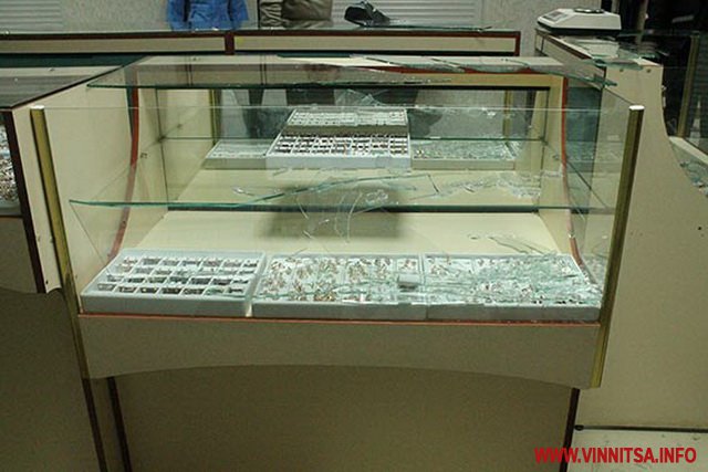Як з’ясувалось, невідомі зловмисники увірвались до крамниці та погрожуючи зброєю зв’язали продавчиню. Аби залякати свою жертву та запевнити її у серйозності своїх намірів, вони вистрілили в стелю крамниці та, розбивши вітрини, забрали коштовності.